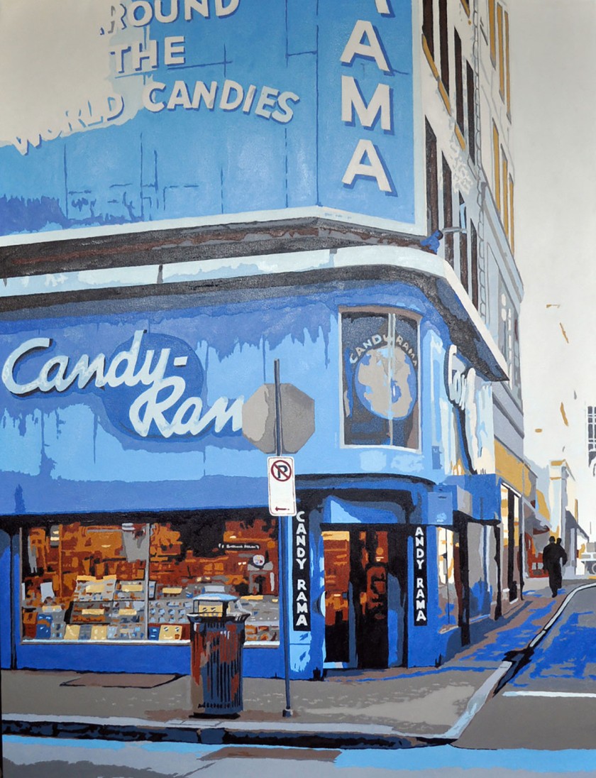 My most recent work has been cityscapes based on my own photography. Stage design has given me an appreciation of the timeworn and weather-beaten appearance one can observe in the urban landscape. It is these features, I believe, that give my subjects their character and interest. I rarely include people in my paintings and when I do they are usually incidental or background figures. Their presence is evident in the battered appearance of the environment and the details of “setting dressing.” In my painting I try to manifest the beauty of these objects and bring out the humanity.