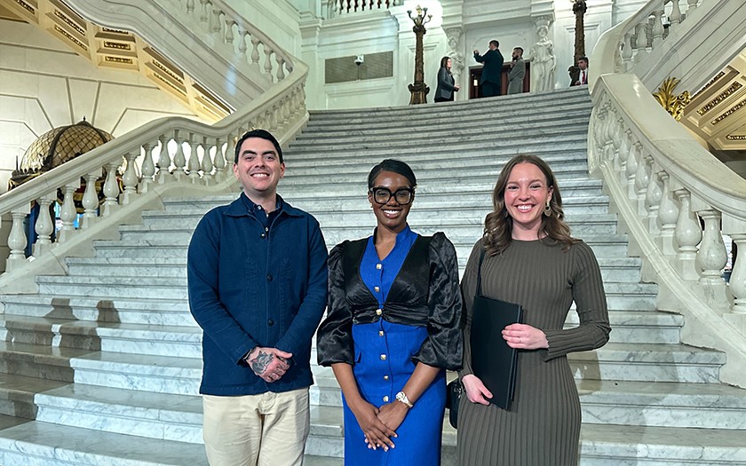 On March 19, 2024, Greater Pittsburgh Arts Council staff members traveled to Harrisburg to attend Pennsylvania Arts Advocacy Day. CEO Patrick Fisher, Director of Research and Cultural Policy, Morgan Kasprowicz, and Advocacy and Communications Associate, Ajani Zanaya Powell, spent the day advocating with legislators and their staff for a $5.4 million increase to state arts funding.