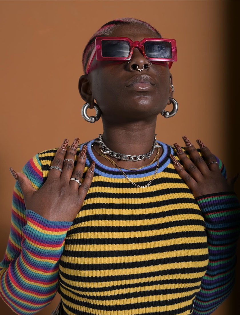 Lauryn Parks is a Pittsburgh-based nonbinary model, painter, and fashion creative with an exuberant personality and magnetic energy. They express their identity passionately through clothing and style — storytelling through each hand-selected piece.