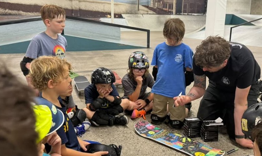Campers learn how to decorate their skateboard // Photo courtesy of Switch and Signal Skatepark