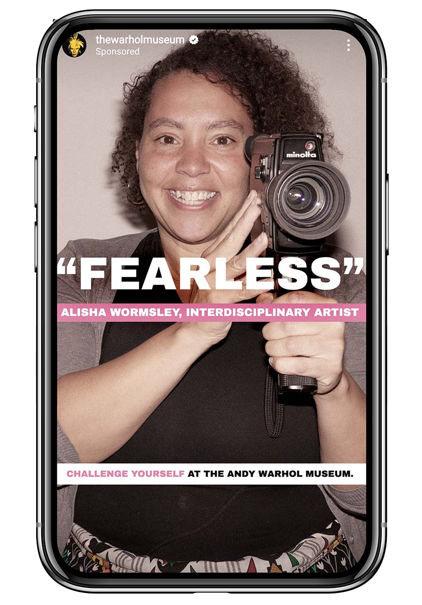 An advertisement for The Andy Warhol Museum featuring Pittsburgh artist Alisha B Wormsley
